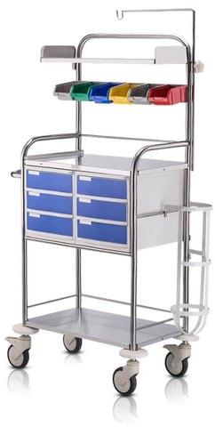 MS Structure with bins, drawers fitted, oxygen carrier, 03 nos tray, 04 nos castor fitted, finish by epoxy powder coated paint