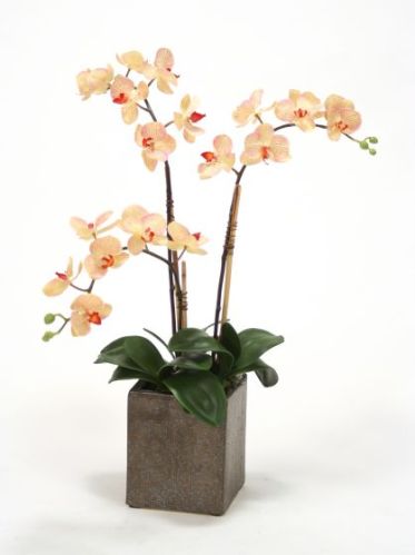 7704# - Cream-Pink Phaleanopsis Orchids in Etched Crystal Bronze Cube Container Material Ceramic Dimensions Height" x Width" x Depth" 28 x 17 x 24 Dominant Color Pastel Pink Dominant Color Family Pinks Shipping Weight 13 Ships