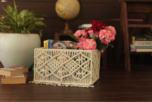 Boho Macrame Desk Organizer, Packaging Type : Box