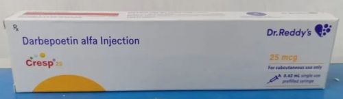 Contact SupplierWe offer Cresp 25, a 25 Mcg Prefilled Syringe by Dr. Reddy's Laboratories Ltd. Each single-use syringe contains 0.42 ML for subcutaneous use, prescribed for anemia linked to chronic kidney disease or chemotherapy. This Rx-only product must be stored at 2°C-8°C and administered under medical supervision. Ideal for exporters, suppliers, and traders in the healthcare industry.