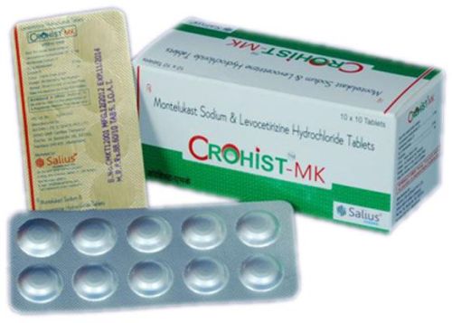 crohist-mk is a combination formulation which contains the generic medications levocetirizine hydrochloride 5mg and montelukast sodium 10mg per tablet,where as levocetirizine hydrochloride is an anti-histamine and montelukast sodium is an anti-asthmatic agent. crohist-mk is available both in the tablet and syrup forms. montelukast sodium is an orally active compound that binds with high affinity and selectivity to the cyslt1 receptor. levocetirizine, the r-enantiomer of cetirizine, is a potent and selective antagonist of peripheral h1-receptors. crohist-mk is used for the treatment of allergic rhinitis (seasonal and perennial) and chronic treatment of asthma.