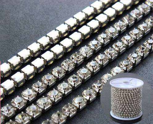 We are offerig crystal cup chain size:3mm(ss12), glass stone color:clear, chain color:sliver or golden, material:crystal