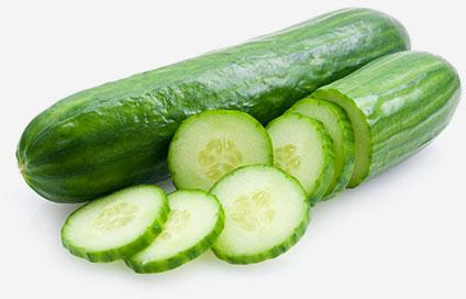 Cucumbers are scientifically known as Cucumis sativus and belong to the same botanical family as melons (including watermelon and cantaloupe) and squashes (including summer squash, winter squash, zucchini and pumpkin). Commercial production of cucumbers is usually divided into two types. "Slicing cucumbers" are produced for fresh consumption. "Pickling cucumbers" are produced for eventual processing into pickles. Slicing cucumbers are usually larger and have thicker skins, while pickling cucumbers are usually smaller and have thinner skins.