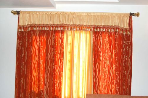 We are offering curtains with boxplate frill. Jacquard fabric curtain with plain frill.