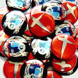 Make your buttons really stand out! Instead of our bright white paper showing where there's no black or color toner, the silver of the button front shines through and can make your custom button graphic pop!