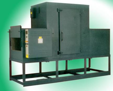 Electric ModelsEach features completely wired, side access control panel enclosing terminals for incoming power, temperature controllers, push buttons and pilot lights. Motor starter and heating element contactors electrically interlocked to shut off heaters if power to blower is interrupted and to permit operation of blower without heat for cooling. Incoloy sheathed tubular heating elements.