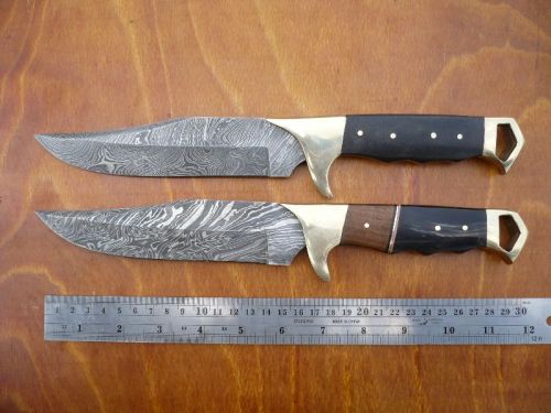 Damascus Steel 224 Layers Twisted and fire Strom Pattern, Damascus Forged Blade, Brass Bolsters, Fiber & Brass Spacer, Micarta & Wood and Horn Handle with Leather Sheath
