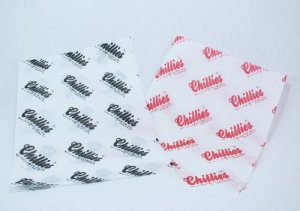 Custom Printed Grease proof Paper &Â Food Wraps & Bags Our custom printed grease proof paper and food wraps are available as waxed or un waxed grease proof paper / food wrap with a choice of either random repeat print or registered print. The image above shows a random repeat print which is particularly suitable for wrapping fast food in.