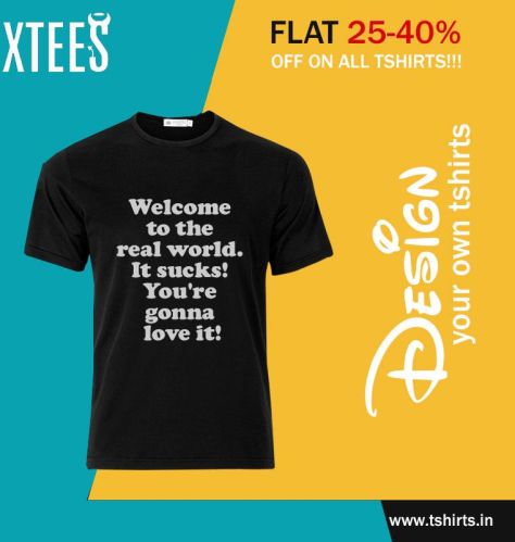 We are offering custom t shirts. Design your favorite t-shirt by using your favorite logo, wallpaper, pictures, text & slogan. Flat 25-40% offer all t-shirts.