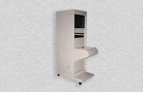 Customized 19 inch floor standing racks with, a canopy protruding out of the 19 inch module mounting frame.  Rugged design makes the canopy to take 150 Kg load, with Solid base frame.  With in-built LCD monitor fitting. Material of rack – Aluminium Alloy, Material for Canopy – M. Steel. Â