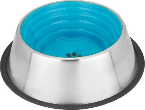 Outside Silver Matt Finish. Inside Colorful Ceramic Like Finishes. Attractive Ring Design Inside Paw Printed. Wide base will help not to tip or slide. Highest Blend of Chromium for strength & Nickel for durability / finish. Stainless Steel Resist Bacteria, Stains, rust & breakage. Available in Red, Blue , Purple, Grey and Green Colors. Available in Regaular Rubber ring or Non Breakable 100% Silicon Ring.
