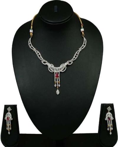 CZ Diamond Necklace Set that we manufacture and supply is widely in demand by the clients owing to its exquisite designs. The base of our CZ Diamond Necklace Set is made from high quality materials on which superior grade cubic zirconia is fixed for an alluring look. Our CZ Diamond Necklace Set is available in different designs so as to offer a wide collection to the clients.