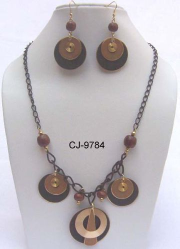 Contact SupplierA very beautiful and enchanting brass necklace (53 cms 20.85 inches) with earring (6.00 cms 2.35 inches) in antique finish. It has round shape brass material with wooden beads in dark brown color with brass molded wire and its hanging size is (4 cm 1.50 inches). It has extra chain to increase and decrease size of necklace with lobster hook.