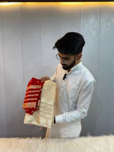Contact SupplierUnleash your bold and adventurous side with our Light Cream Viscose Georgette Saree! This traditional saree features a striking stripe pattern and is made from high-quality viscose georgette fabric, providing both comfort and style. Complete your look with the added touch of a vibrant Red Georgette blouse. Dare to stand out in this must-have saree Fabric- Viscose Georgette Saree Length- 5.5 Mtr Blouse- 0.8 Mtr Pattern- Zari Stripes Pattern Care- Dry Wash Only Note- Saree Color May vary Because of Different Screen Resolution And Lighting