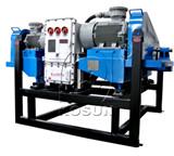kosun dc series decanter centrifuge is used in separating suspension of solids phase with particle diameter(d≥2μm) for drilling mud and fluids handling. Ruggedly built for oilfield and industrial services, it is especially effective in environmentally sensitive areas. It delivers high fluid-recovery rates and efficient solids control to significantly reduce the costs of makeup fluids and disposal. The centrifuge must test the dynamic balance for smooth operation over long periods.speed ranging from 0 to 3900 rpm, generating centrifugal forces reach up to 3000g.