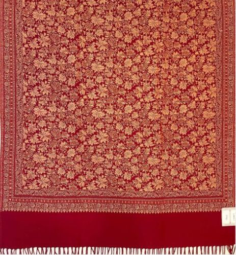 Deep Maroon Traditional Border Viscose Wool Printed Shawl?