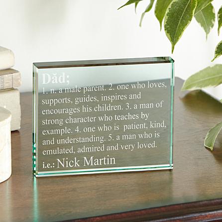 A Personal Creations Exclusive! He’s the very definition of a great dad or grandpa—so never let him forget how awesome he truly is. Made in the USA. Made of glass block. Engrave with any name up to 18 characters. Available in Dad, Grandpa or Great-Grandpa version. Measures 5”Wx4”Hx34”D. Item