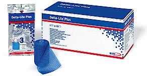 Delta-Lite® Plus is our new fiberglass cast tape that combines a fiberglass substrate and advanced water activated polyurethane resin system which provides tack free properties. The smooth finish of the cast minimizes the risk that clothes get caught on the cast. Low tack resin Primary and secondary casting Rigid support Good conformability High lamination Excellent end lay down Smooth surface 3-5 minutes set time Weight bearing in 20 minutes