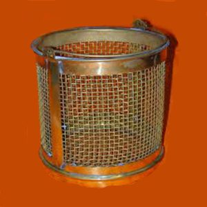 20cm dia x 20cm high fitted, galvanized wire mesh of 6.3mm handle for suspending it from the balance