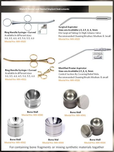 We are manufacturer and exporter of dental implant instruments. the quality management system has been properly implemented and is successfully working at all production stages. We carry out all the necessary tests, inspections and process control activities to ensure that there is no problem with the instruments performance. the technical specifications are provided for more understanding of the products and to improve the confidence of the customer. samples and prices can be obtained on demand.