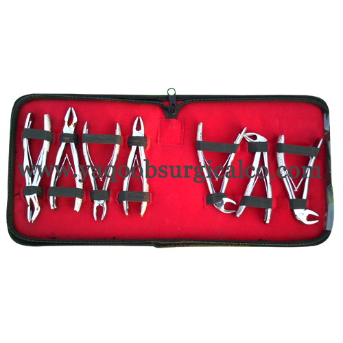 Extracting forceps children pattern 7 piece set made with stainless steel comes with pouch packing.