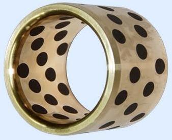 Graphite impregnated bronze bushings are also known as graphite plugged bronze bearings or oilless bronze bushings. Graphite impregnated bronze bushings are great for applications where maintenance is difficult and where normal grease and oil based lubricants can burn off due to high temperatures. Bronze body provides the necessary strength to the bearing and graphite plugs acts as reservoir of lubricants. Graphite film from the graphite plug is transferred onto the shaft as it rotates and acts as lubricant even under high loads and low speeds. The cast bronze base material gives stronger bearing ability when compared to self lubricating leaded bronze bushings. The applications for these oilless bronze bushings include construction equipment, transportation machinery, mining equipment etc.