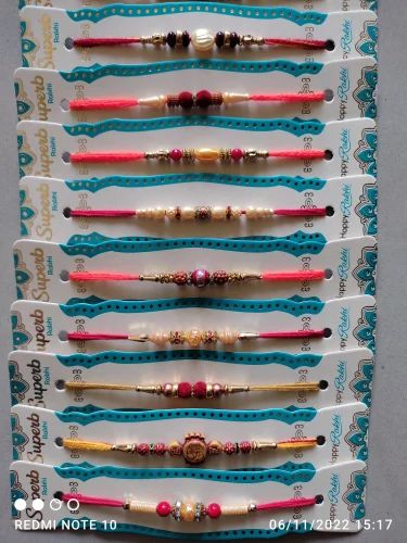 Multicolor Cotton Thread Designer Bead Rakhi, Technics : Hand Made