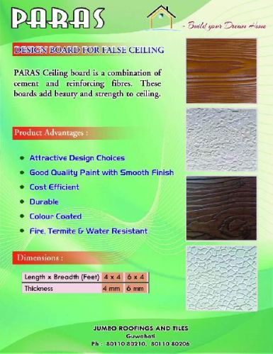 Designer Ceiling Tiles) are made from composite matrix. The product texture with embedded design and added resistance to moisture, fire, noise, heat and termite makes it a perfect ceiling and cladding material which gives house an elegant look and immense pleasure to owner in affordable cost.