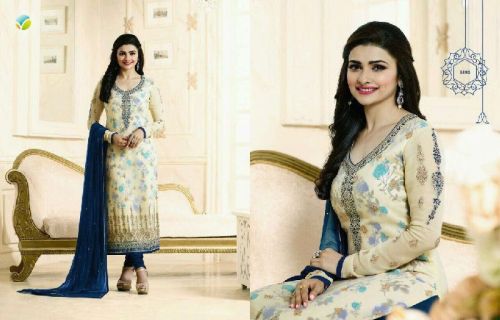 Top :- Faux georgetternSleeves :- Faux Georgette With Emb.work + fullrnBottom :- Santoon rnInner :- bhagalpuri printrnWork :- EmbroideryrnDupatta :- NazmeenrnLength :- Max up to 48rnSize :- Max up to 46rnType :- Semi Stitched
