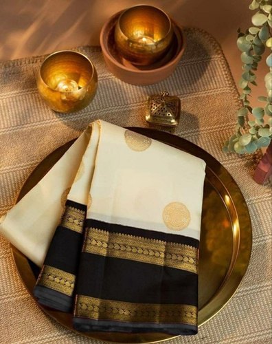 Creamy Kanjivaram Jacquard Silk Saree, Occasion : Party Wear, Wedding Wear