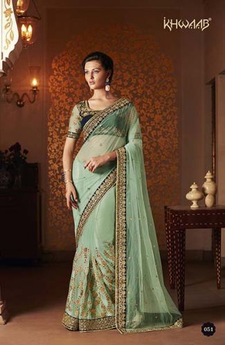Contact SupplierDESIGNER PARTY WEAR SAREE FROM THE HOUSE OF SAAWARIYA. MADE TO ENHANCE THE BEAUTY IN YOU IN EVERY OCCASION. ATTACHED WITH MATCHING BLOUSE PIECE WHICH CAN BE CUSTOMIZED TO ANY SIZE AS PER FABRIC LIMITATIONS.