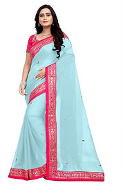 Embroidered Light Blue Georgette Saree, Width : 6.5 Meter