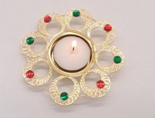 We offer attractive and rich looking Designer Metal Diya in gold, silver and antique finishes. These festive looking bright diyas are available in sizes and combinations of your choice. We use superior quality embellishments like Kundan and sequins to ensure that the Designer Metal Diya s last long. All are Designer Metal Diya come with a lacquer coating that ensures they are rust retardant and have a good sheen on them. Based in Mumbai, Maharashtra, India, we are a renowned supplier, exporter and manufacturer of Designer Metal Diya.