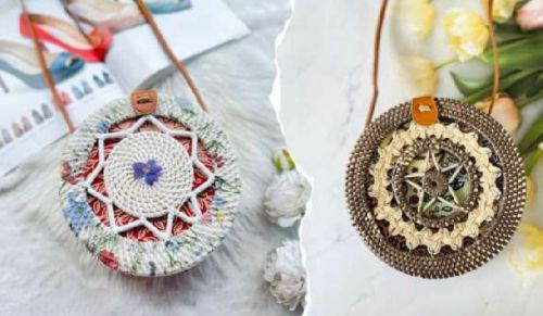 Round Designer Rattan Handbags, For Office, Technics : Machine Made