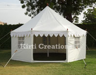 Description :Â Designer Resort Tent is come in hut shape with top pointed roof and it is protected from all side. It is made for small or mid-size parities like birthday or small get together. Â