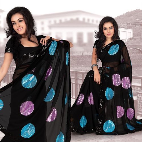 • this lovely saree is exquisitely embellished with sequins and patch work in stylish way.