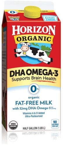 Treat your family to the goodness of Horizon® organic milk, with 32 mg of DHA Omega-3 per serving. DHA Omega-3 is a valuable nutrient that may help support brain, heart and eye health. Available in half gallons.
