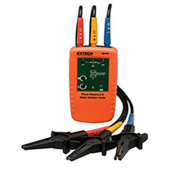 Indicates rotation direction of the motor. Determine rotation of a motor without contact. LEDs indicate phase orientation (clockwise or counter-clockwise) and whether each of the three phases is live. Double molded durable housing. Easy to use alligator clips with wide jaws.