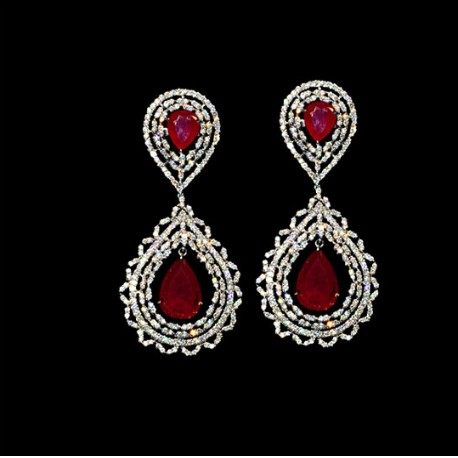 Diamond Ruby Earring Model Weight: 8.150 gms (Approx.) Condition New Product Type: Gold Product for: Female Weight: 8.150 gms (Approx.) Size: All Size Gold Ct: 14 Kt Diamond Colour: G-H Diamond Round: 0.18 Ct