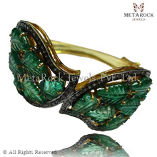 Diamond Pave Emerald Gemstone Carving Bangle?