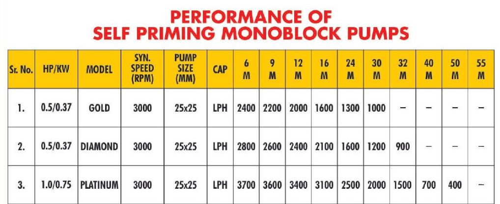 Non-Return Value :- The monoblock pump is fitted with specially designed spring loaded non-return valve, which does not allow water to return in the suction line and helps in priming when pump is switched on.