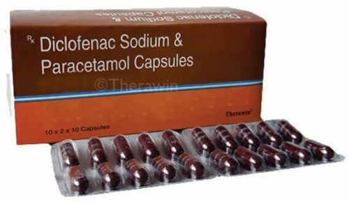 Contact SupplierDiclofenac Sodium is a salt that belongs to the nonsteroidal anti-inflammatory drug (NSAID) class. It works by inhibiting the activity of COX enzymes, which are responsible for converting fatty acids, specifically arachidonic acid, into prostaglandins. By blocking the production of prostaglandins, it helps reduce inflammation and pain. Paracetamol complements the effects of Diclofenac by blocking different pathways involved in pain and fever. It primarily works in the central nervous system to reduce pain and lower body temperature. Uses of Diclofenac + Paracetamol capsule Take the oral capsule by mouth with water. Consult with your doctor about whether to take it before or after meals. Avoid crushing, breaking, or chewing the capsule. The Diclofenac + Paracetamol capsule is used to treat: Ankylosing spondylitis Muscle pain Toothache Rheumatoid arthritis Osteoarthritis Diclofenac + Paracetamol capsule side effects Diclofenac + Paracetamol capsule can be associated with symptoms such as lightheadedness, diarrhea, vomiting, nausea, and vertigo. Too much fluid may be lost from the body, so it’s important to stay hydrated throughout the treatment. Also, avoid tasks that require too much focus, or at least pause them for a moment, and resume once you feel better. If you have kidney issues or heart problems, let your doctor know. Using Diclofenac + Paracetamol might weaken the kidneys in the long run. Severe symptoms of Diclofenac + Paracetamol capsule, include: Abdominal pain Constipation Loose of concentration Pounding heartbeat Dark urine Tinnitus Severe allergic reactions
