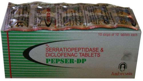We are offering diclofenac + serratio peptidase. Ambrosia remedies (p.) ltd. Is manufacturer & exporter of tablets & capsules (general) and liquid orals, for human & veterinary use. Anti inflammatory (nsaids) serratiopeptidase ip 10mg + diclofenac potassium ip 50mg (enteric coated tablets). Our brand name is pepser – dp. Available in 10t alu. Foil pack. Box of 10 x 10t. We can manufacture diclofenac + serratio peptidase for export & on third party manufacturing basis.