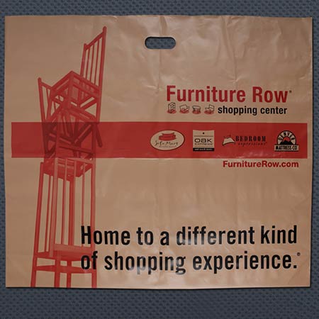 We offer die cut handle bags with bottom gusset. Bag-making process - side-seal; die cut handles printing process - intaglio printing, 1 to 12 colors (alcohol-soluble ink or water-based ink) film thickness - bag body: 0.03mm ~ 0.20mm optional dimensions - bag width: 120mm ~ 1000mm; bags height: 180mm ~ 700mm; upper folded: 40mm ~ 80mm; gusset: 15mm(30mm after expansion) ~ 100mm(200mm after expansion) size and shape of eye rings - can be customized monthly capacity - 6 million ~ 10 million(depending on product size and the thickness of the bag body).