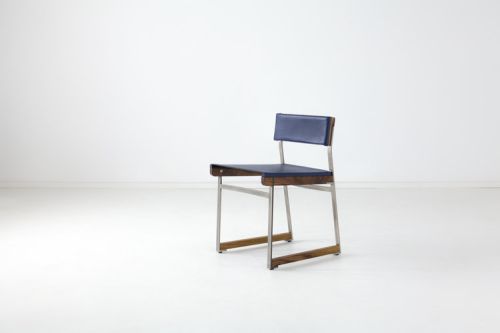 Inspired by the graceful curved cables found on suspension bridges, the Diego Chair is handcrafted using traditional wood and metal-working techniques with a seat that employs hi-tech components to maintain form. The chairs strike the same balance between industrial strength and artful construction, between technology and tradition. Designed, developed and handcrafted in Brooklyn, NY from American hardwood, leather and steel.