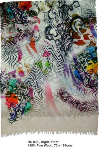 We are offering digital print shawls 100% fine wool - light weight digital printed shawls 70 x 180cms more than 400 designs available buyers private designs are welcome