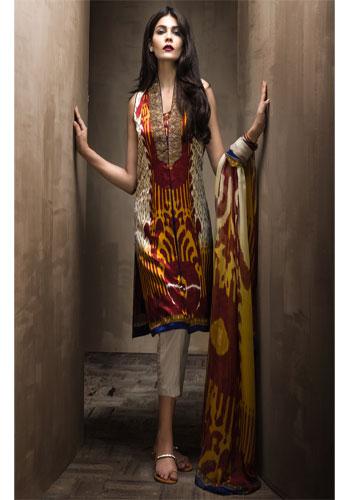 Digital Silk Shirt Front Digital Silk Shirt Back Digital Silk Sleeves Digital Silk Dupatta Cotton Shalwar