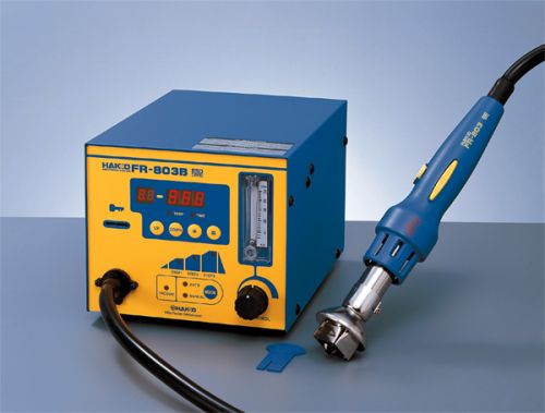 the fr-803b is one of hakko's new generation of smd rework stations. The integrated temperature sensor allows for consistent and accurate temperature control, and the unique air stream outlet design allows for consistent temperatures of the hot air stream generated by the unit.