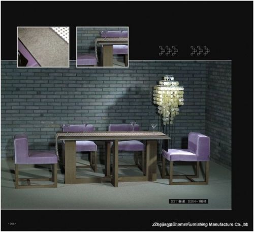 We are offering dining room sets. 1. Dining table and chair 2. Made from oak veneer, marble table top, solid wood 3. Oem odm welcome 4. Any other style also available we are big supplier of wooden furniture including the bedroom furniture, living room furniture, dining room furniture mainly made from e1 grade mdf with oak veneer or made from solid wood. the price vary upon different material and size requirement.