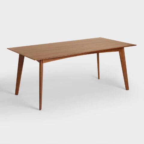 Characterized by mid-century design details like a beveled edge, clean lines and tapered blade-shaped legs, our sleek dining table is crafted of solid wood and finished in classic walnut brown.